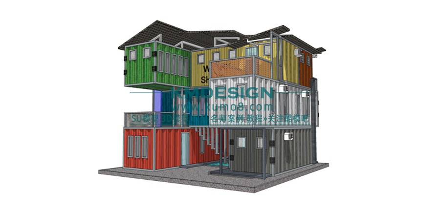 景观建筑 集装箱 改造草图大师SU模型