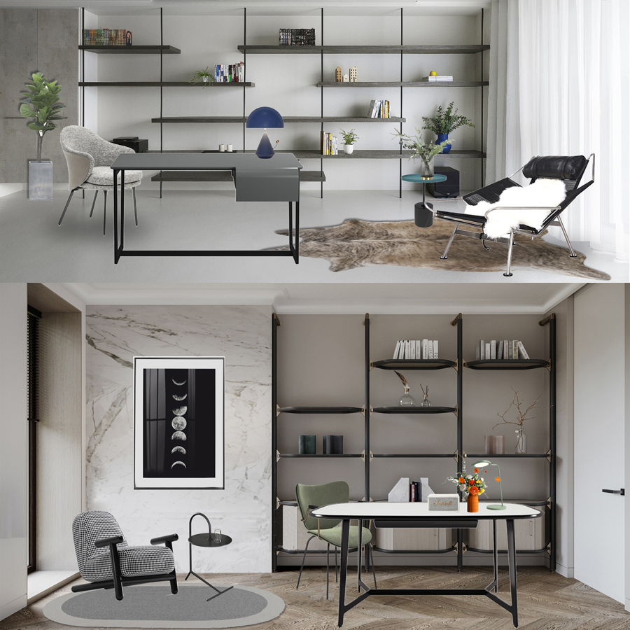 书房软的搭配方案PSD免抠图 10套